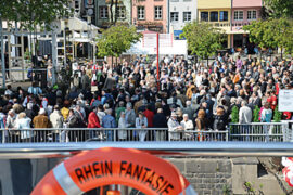 „Wir hatten seinerzeit durchaus Respekt vor der Herausforderung, solch’ ein Riesenschiff zu planen. Es ging ja damals um die zukunftsweisenden Fragen, wie stellen wir uns die neue KD vor? Wohin geht im wahrsten Wortsinn die Reise?“, erinnert sich Schmitz, der auf die Frage der Schiffsbauer bei der beauftragten Werft De Hoop im niederländischen Lobith, wie hoch denn der Aufbau der Bühne sein soll, eine Antwort gab, die nur einem Kölner einfallen konnte. „Ich habe kurz überlegt und dann gesagt, dass die Bühne auf jeden Fall so hoch sein muss, dass bei den Karnevalsveranstaltungen die Tanzoffiziere die Funkenmariechen gefahrlos in die Luft werfen und wieder auffangen können.“